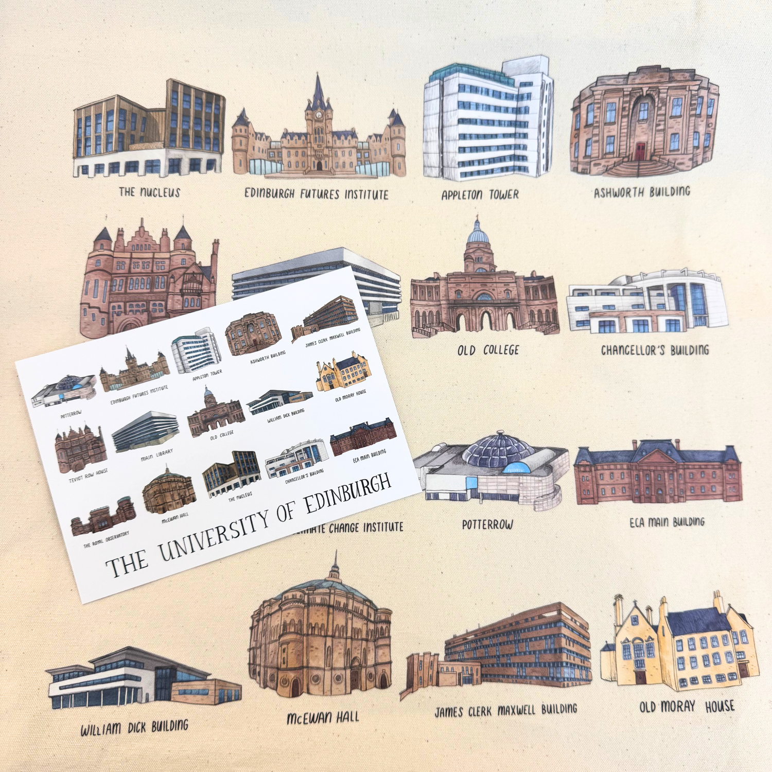 Colourful illustrations of the University of Edinburgh's most iconic buildings.