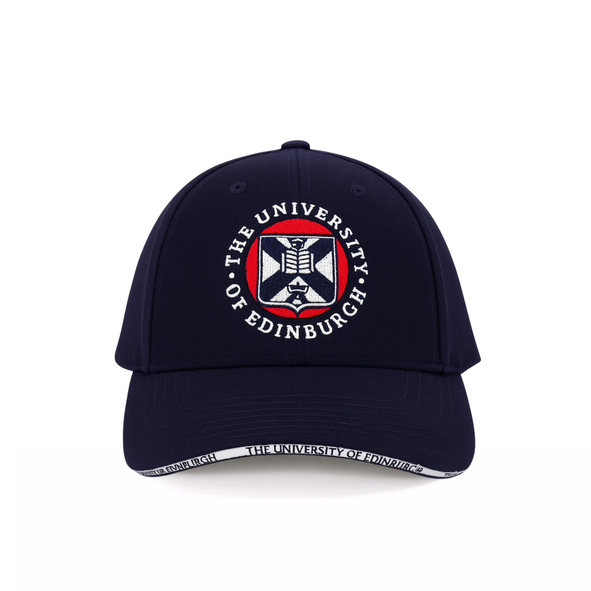 A navy blue baseball cap with full colour embroidery of the crest on the front panel.