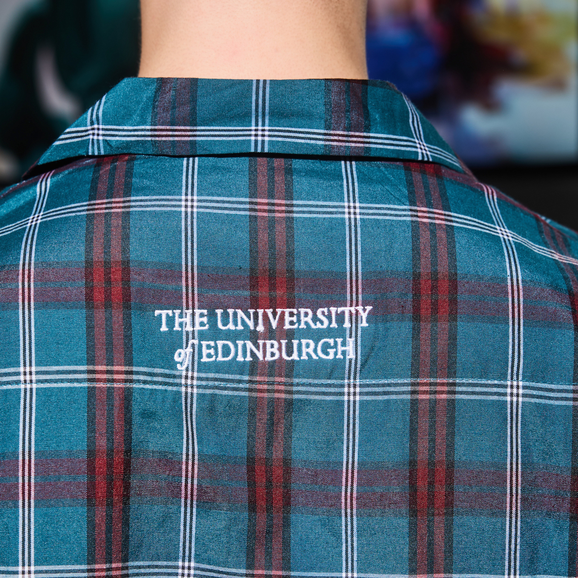A luxury set of pyjamas featuring the University's official tartan. Made from 100% cotton, this set includes a long sleeve button up shirt, trousers and matching drawstring bag.