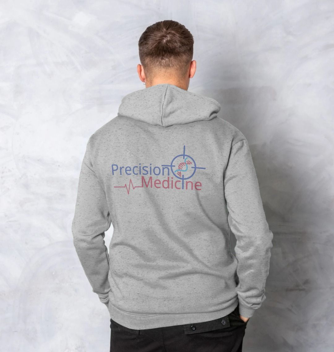 This item is part of our made to order range of merchandise. It features the Precision Medicine Program printed across the front and back of this certified organic cotton hoodie.