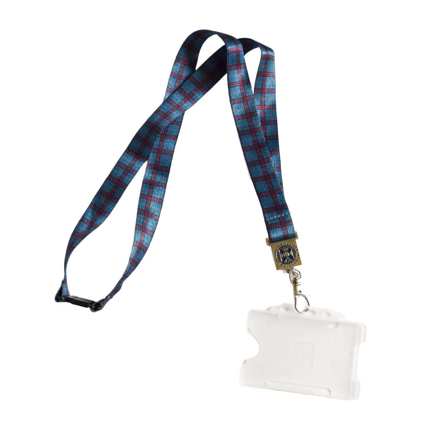 Premium lanyard featuring the University's official Tartan and crest, made from recycled PET.