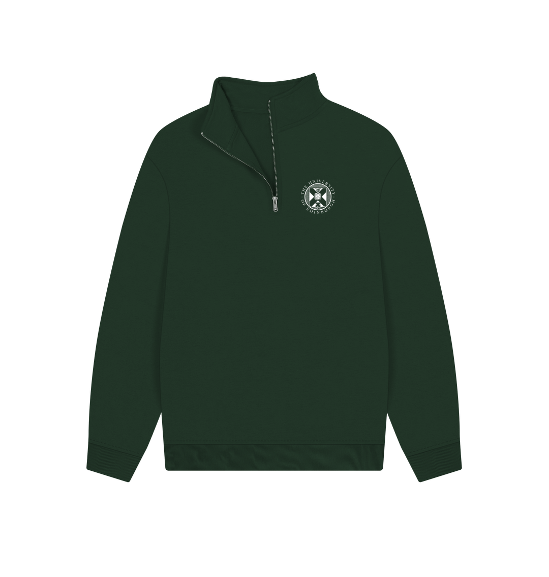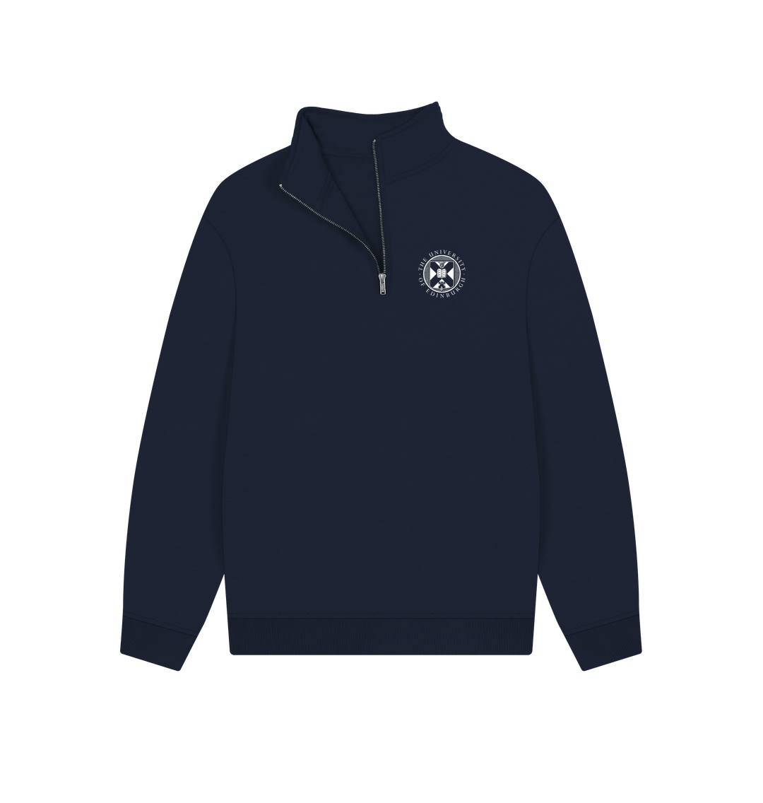 This item is part of our made to order range of school merchandise. It features the specific school branding printed across the back of this certified organic cotton quarter zip sweatshirt.